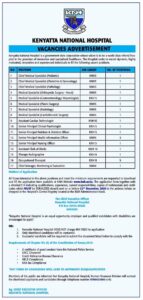 Kenyatta National Hospital (KNH), Kenya’s premier public referral hospital, has announced 23+ job vacancies across medical, clinical, technical, and administrative departments. If you’re looking for government hospital jobs in Nairobi, this is a major recruitment drive you won’t want to miss.
